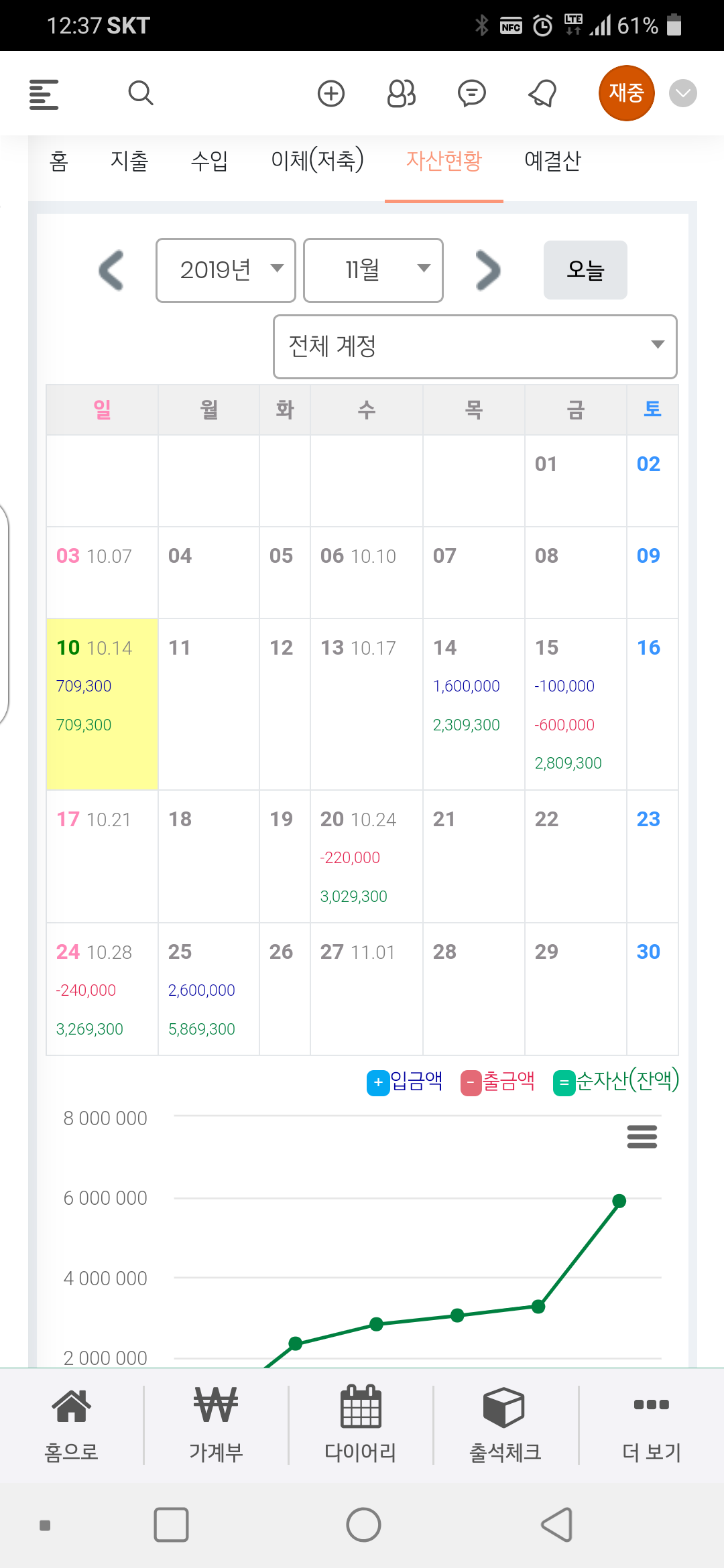 재중이재중 재중이 2019.11.10 #0 지출인데 순자산이 계속상승하네요 원래 이러는건가요? 아님아직미래라서 계산안되는건가요? 첨부 파일 Screenshot_20191110-123800.png 192.18 Kb . 182 읽음