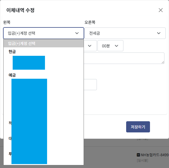 마지막 질문인 이체내역 수정은 지금도 동일합니다. 할 수 없이 삭제하고 다시 작성했습니다.
