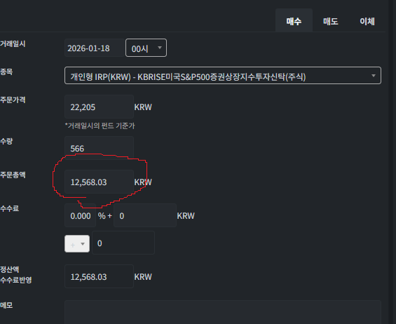 IRP 펀드 자산 등록 중 현재 가격 반영 오류
